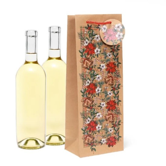Vánoční papírová dárková taška NATUR s originálním designem na dvě láhve vína nebo 1 láhev vína a jednu láhev šampaňského.