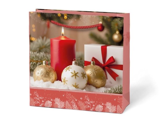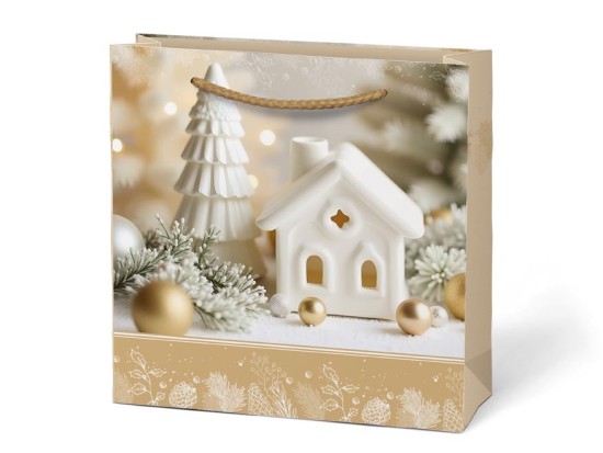 Taška je vyrobena z kvalitního pevného papíru a doplněna odolným provázkovým uchem pro pohodlné přenášení. Nabízíme ji v mixu vánočních designů – od svíček, dárků a ozdob až po zimní chaloupky a moderní sváteční dekorace.