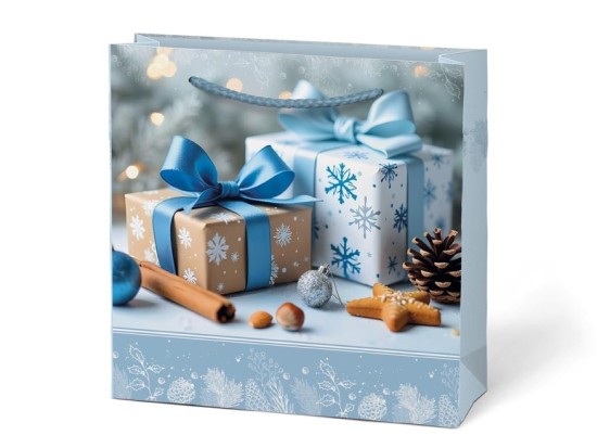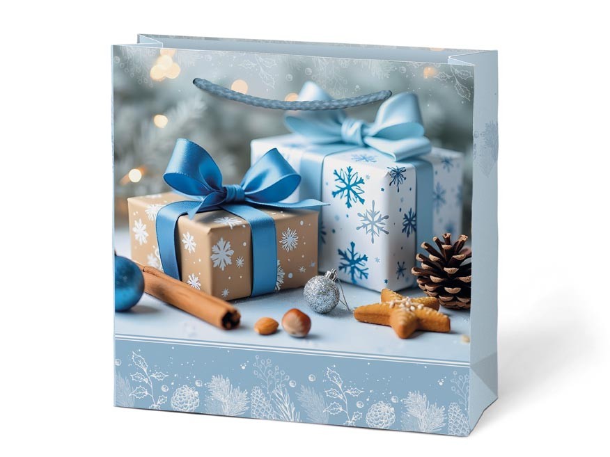 Vánočpapírová dárková taška MFP T2 je elegantním a praktickým řešením, které ušetří čas při balení a přitom dodá vašemu dárku slavnostní vzhled. Je ideální pro menší krabičky, kosmetiku, svíčky, sladkosti nebo jiné drobnosti, které chcete věnovat stylově.