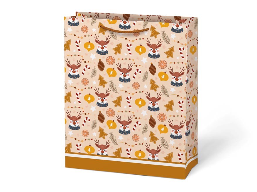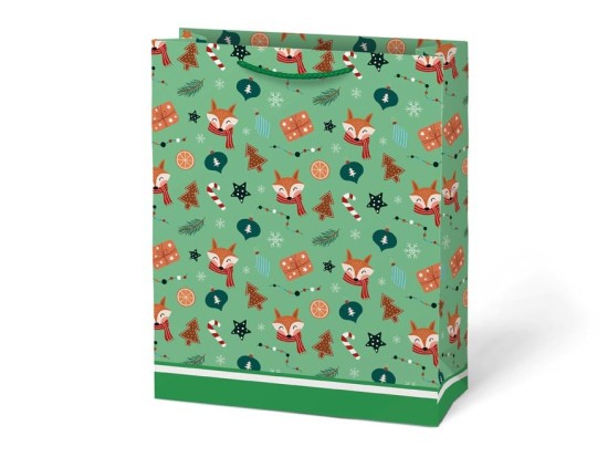 Barevná a prostorná vánoční dárková papírová taška MFP T5 je skvělým pomocníkem, pokud chcete rychle a stylově zabalit větší vánoční dárky. Motivy s ozdobeným stromečkem, usměvavým sněhulákem, sobíky i liškami přinesou do vašeho obdarování hravost a kouzelnou atmosféru Vánoc.
