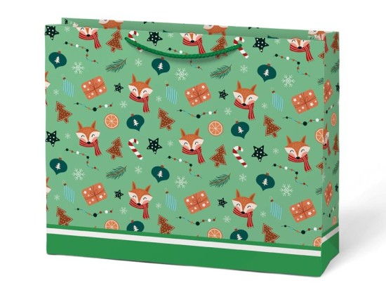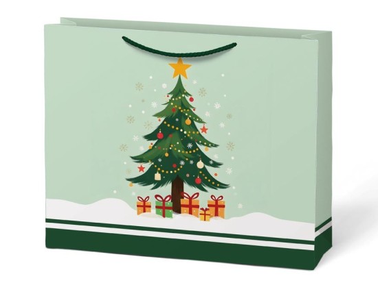Krásná papírová taška s vánočními motivy je perfektním řešením pro balení objemnějších dárků. Sněhulák, vánoční stromek, sobíci i hravé sváteční vzory vykouzlí úsměv hned při předání. Díky velkorysým rozměrům do ní snadno uložíte kn