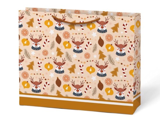 Krásná papírová taška s vánočními motivy je perfektním řešením pro balení objemnějších dárků. Sněhulák, vánoční stromek, sobíci i hravé sváteční vzory vykouzlí úsměv hned při předání. Díky velkorysým rozměrům do ní snadno uložíte knihy, textil, hračky či jiné větší dárky.