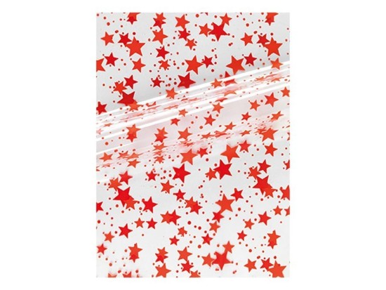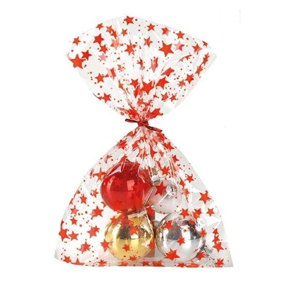 Vánoční dárkový sáček - transparent Starry, červená-zlatá - 25 x 40 cm - 100 ks