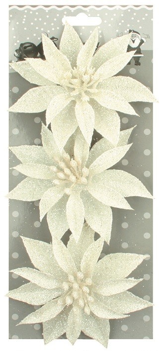 Růže vánoční - glitrová bílá 3 ks - 8 cm 1945