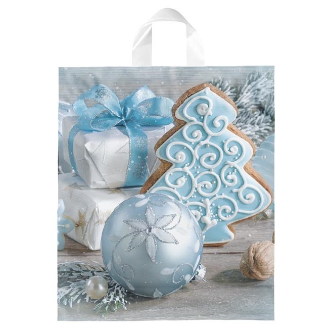 Igelitová nákupní taška s jemným zimním motivem v modrobílých tónech přináší nádech sváteční elegance. Výrazný perníček ve tvaru stromečku, dárky s mašlemi a vánoční ozdoba vytvářejí harmonickou atmosféru klidu a radosti. Taška je vyrobena z pevného igelitu, má praktická ucha, takže se hodí nejen na každodenní nákupy, ale i na balení dárků či přenášení větších předmětů během vánoční sezóny.