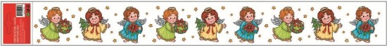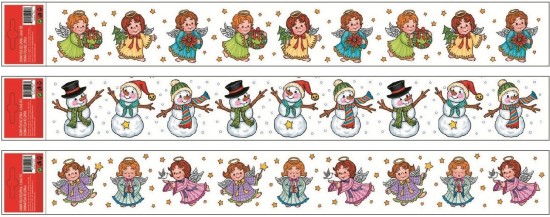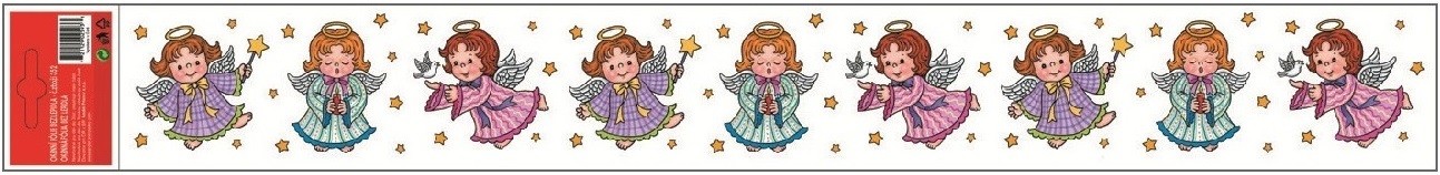Vánoční okenní fólie - pruh - andílci a sněhuláci- 55 x 7 cm - 352