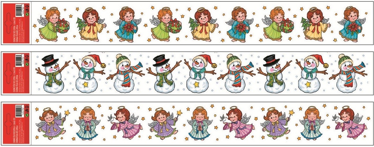 Dekorační okenní fólie – pruh, Andílci a sněhuláci