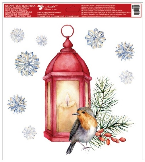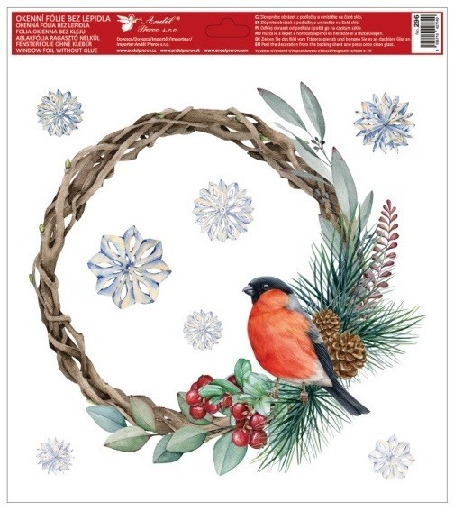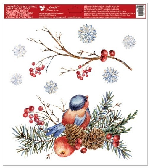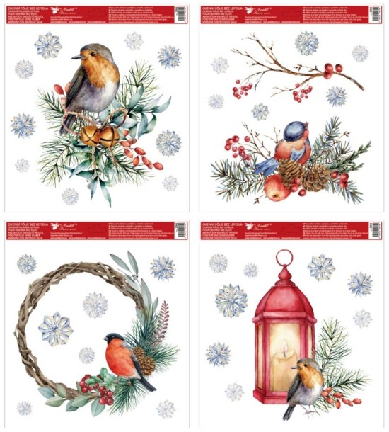 Vánoční okenní fólie - Ptáci - 30 x 33,5 cm - 296