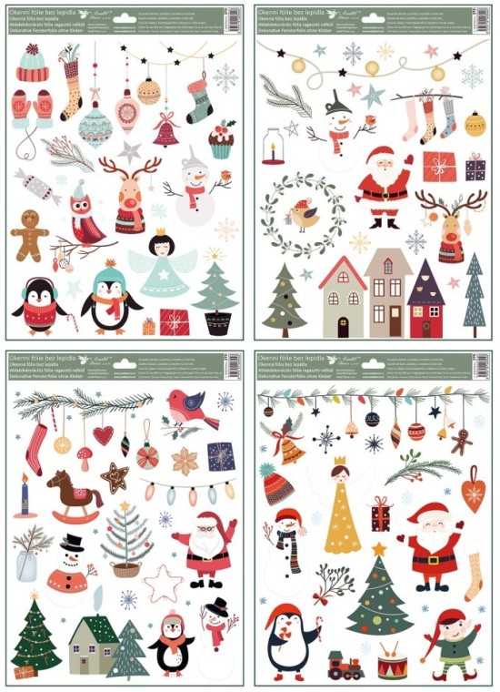 Vánoční okenní fólie s glitry - barevná - 30 x 42 cm - 279