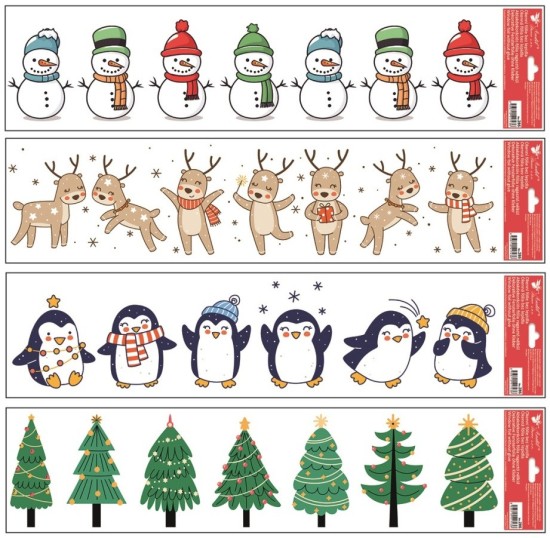 Veselé vánoční motivy v sytých barvách – stromečky, sněhuláci, tučňáci nebo sobíci – navodí radostnou sváteční náladu. Skvělá volba pro domácnosti, výlohy obchodů, školy nebo veřejné prostory během Vánoc.