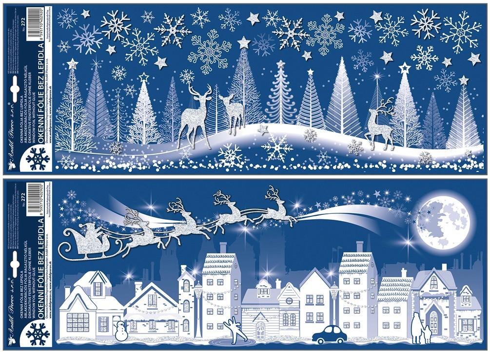 Vánoční okenní fólie s glitry - Město a les - 21 x 59,5 cm - 272