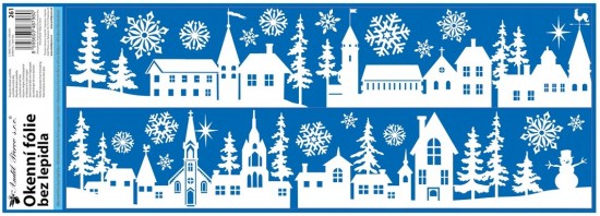 Vánoční okenní fólie s glitry - pruh - Jelen, město - 59,5 x 21 cm - 261