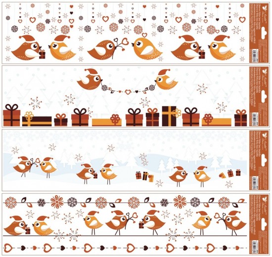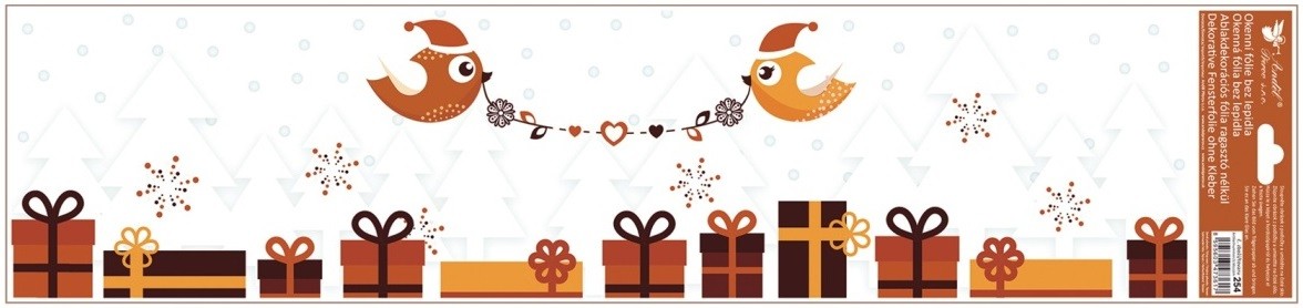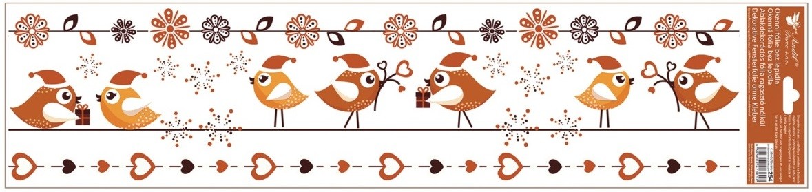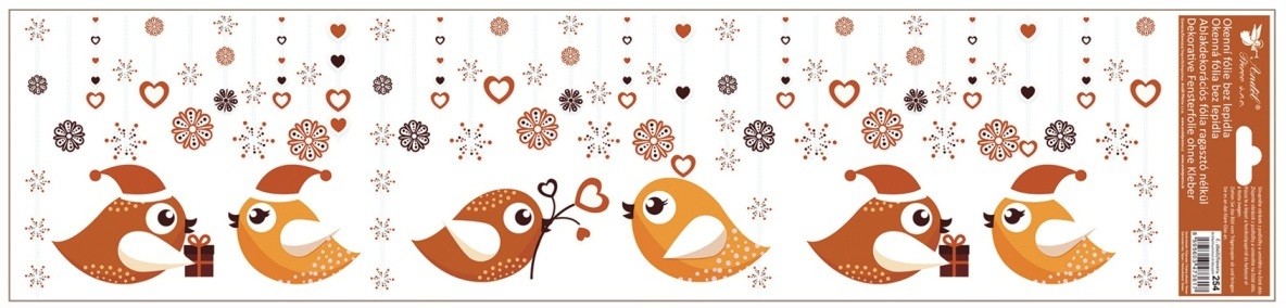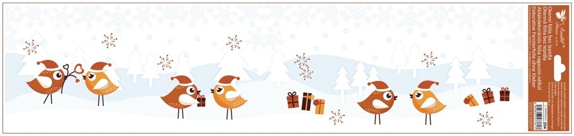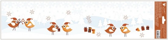 Vánoční okenní fólie s glitry - pruh - Ptáčci - 64 x 15 cm - 254