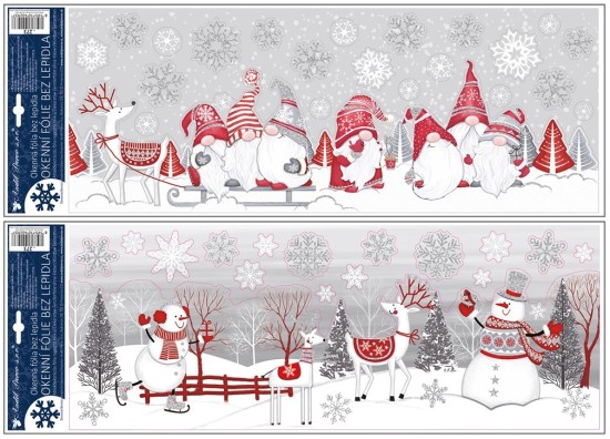 Vánoční okenní fólie s glitry - Skřítci a sněhuláci - 21 x 59,5 cm - 273