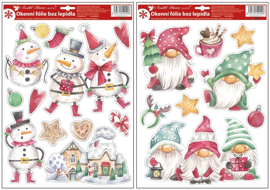 Vánoční okenní fólie s glitry - Sněhuláci a skřítci - 29 x 41 cm - 270