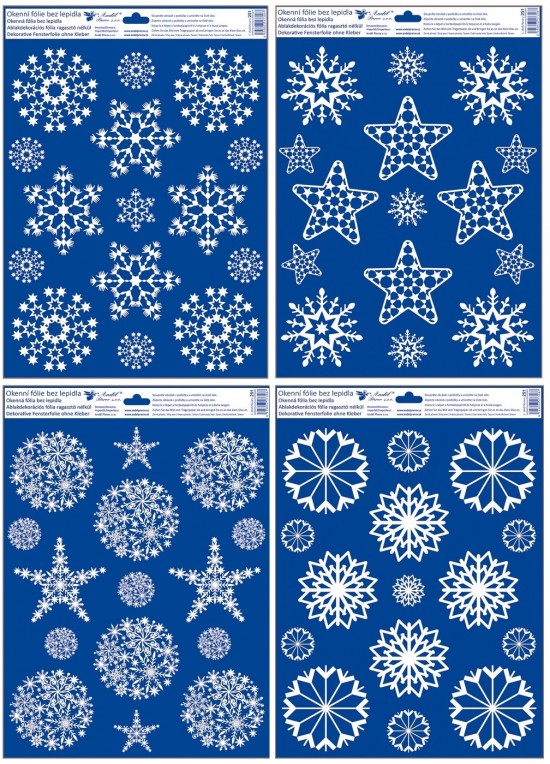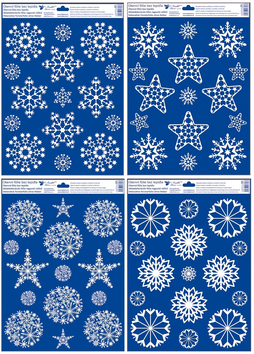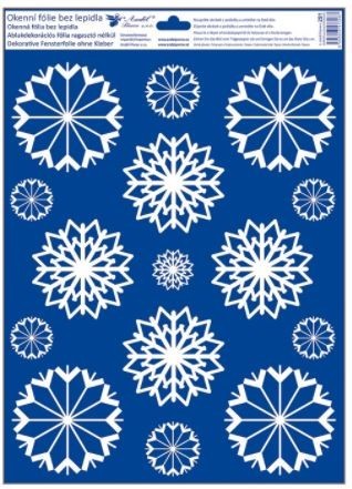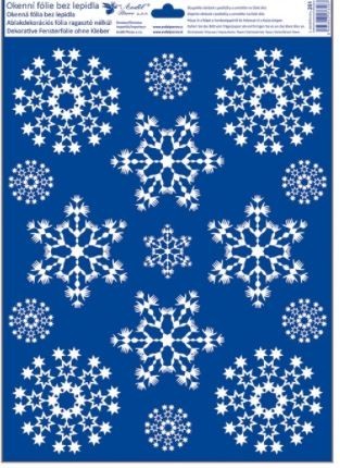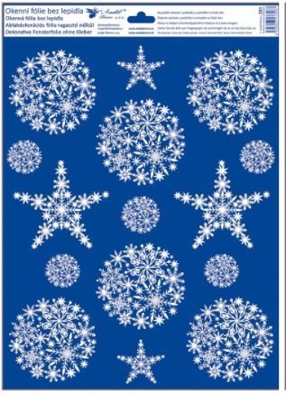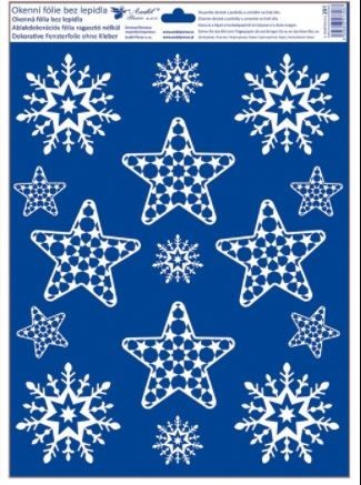 Vánoční okenní fólie s glitry - Vločky a hvězdy - 30 x 42 cm - 251