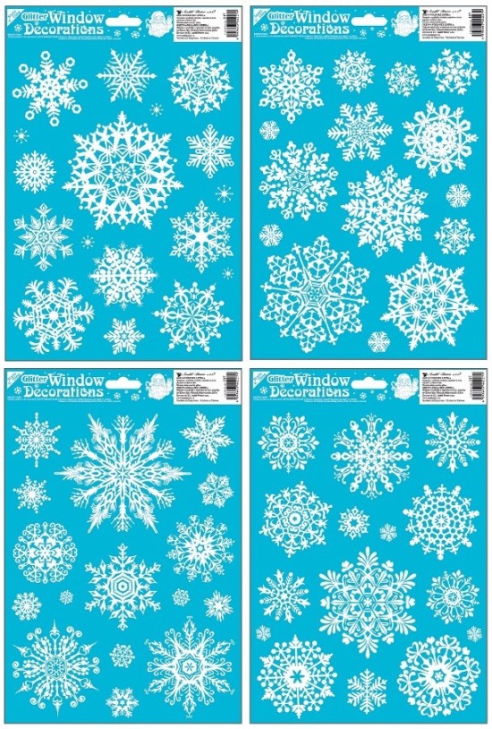 Bílé sněhové vločky s glitry krásně vyniknou na oknech, zrcadlech nebo skleněných dveřích. Stylová volba pro zimní i vánoční dekorace v domácnostech, kancelářích nebo obchodech.