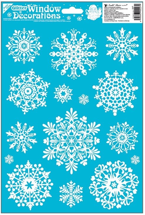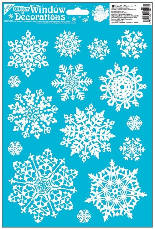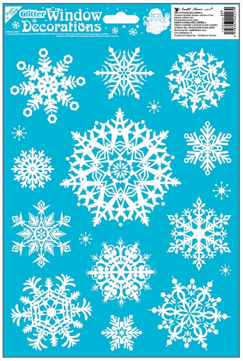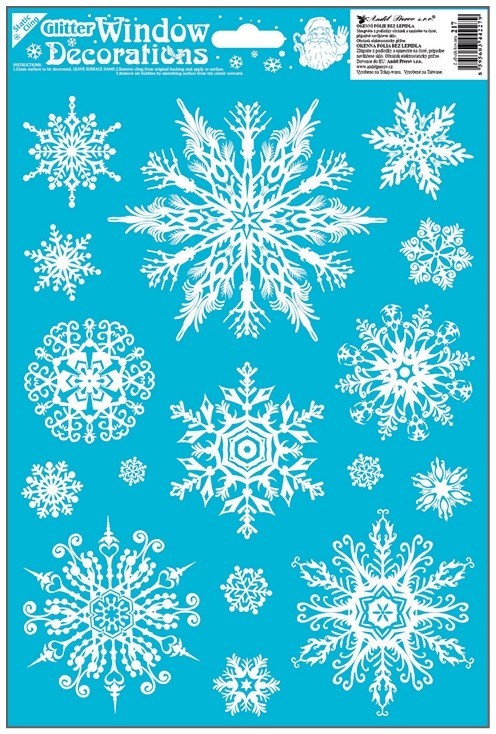 Jemná okenní fólie s bílými sněhovými vločkami a třpytivým efektem o rozměru 20 × 30 cm je ideální pro zimní a vánoční výzdobu. Přilne elektrostaticky – bez lepidla, nezanechává žádné stopy, snadno se aplikuje a lze ji opakovaně použít.