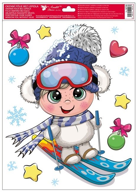 Hravá dekorační fólie s motivem zimních radovánek o rozměru 30 × 42 cm dodá vašim oknům veselou zimní atmosféru. Glitrový efekt krásně rozzáří motiv na světle a fólie se díky elektrostatickému přilnutí snadno připevní bez použití lep