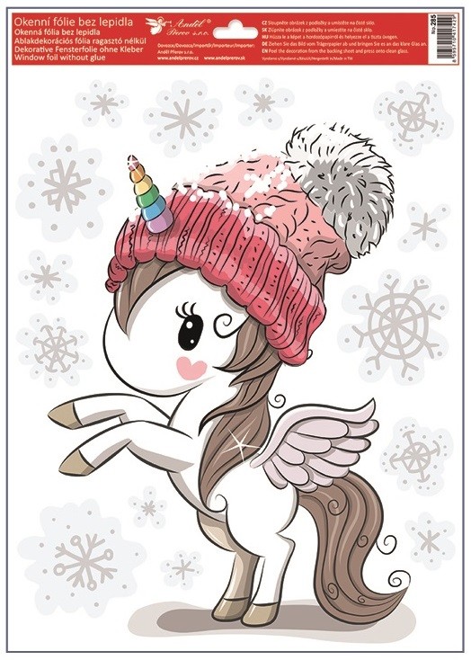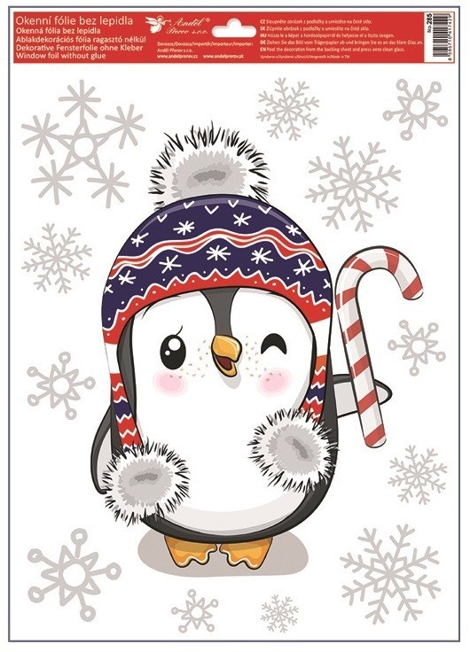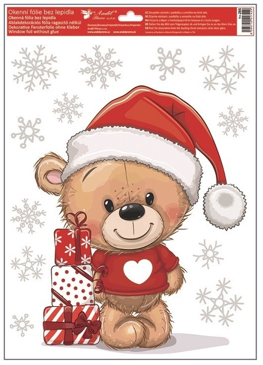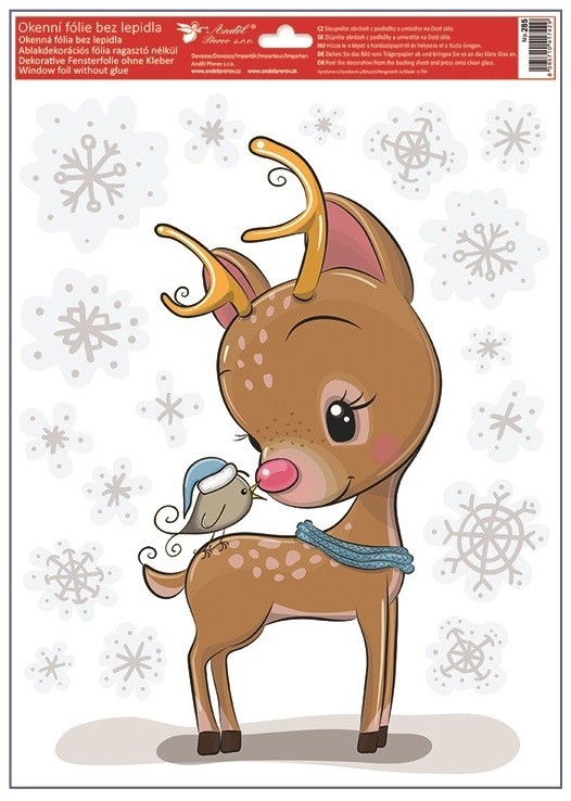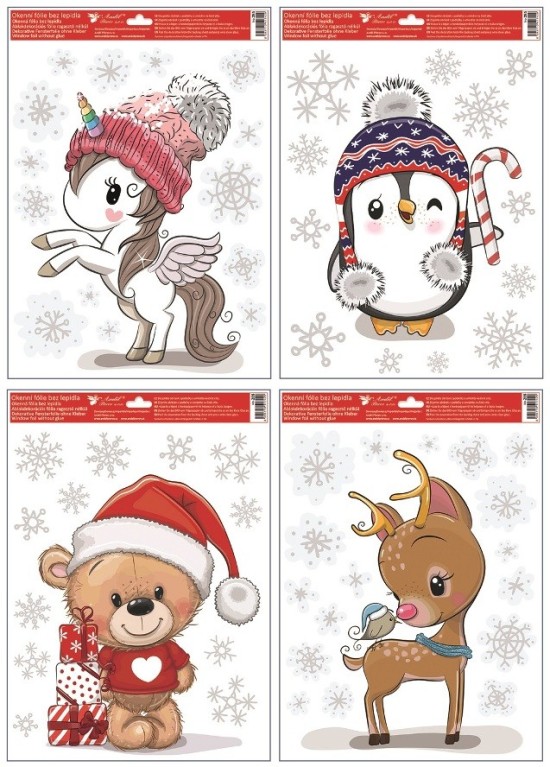 Vánoční okenní fólie s glitry - zvířátka v zimě - 30 x 42 cm - 285