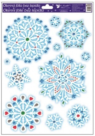 Vánoční okenní fólie - Vločky s kamínky - 494