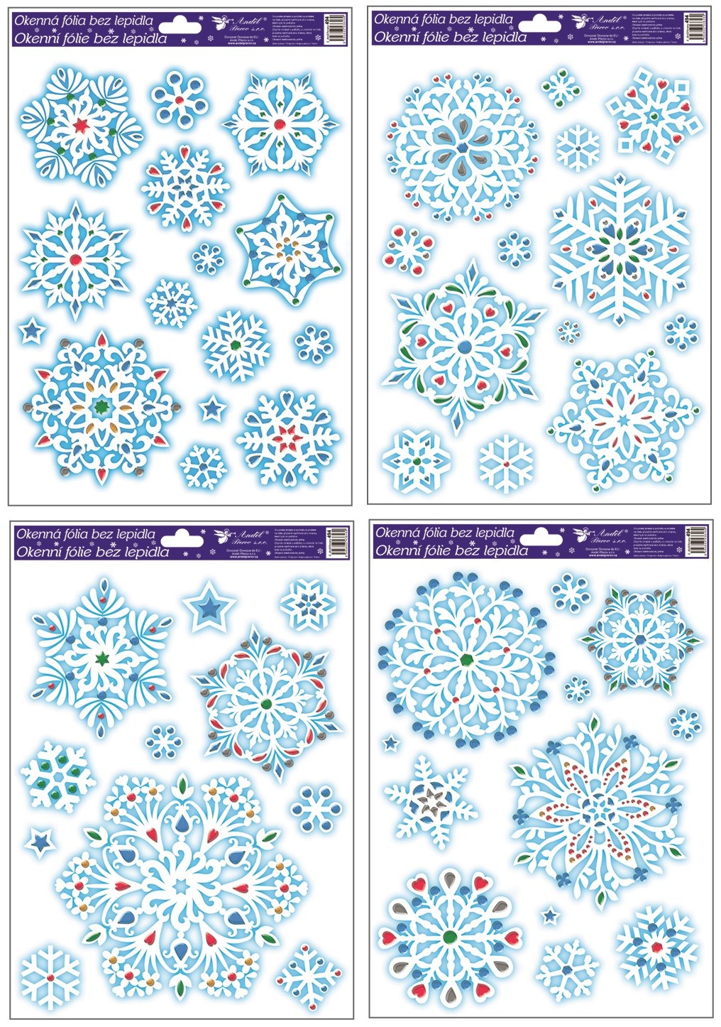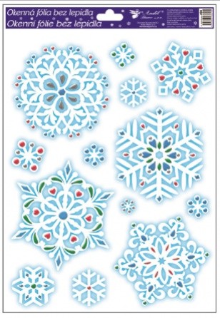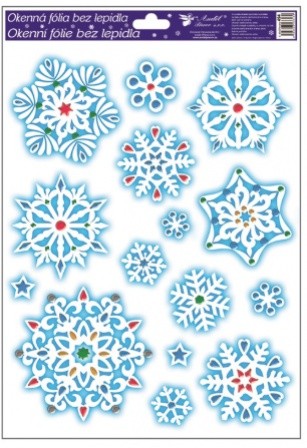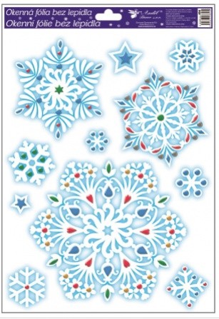Vánoční okenní fólie - Vločky s kamínky - 494
