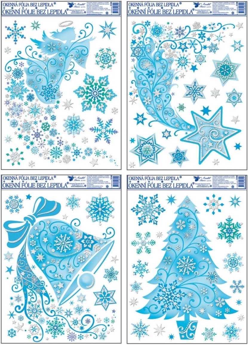Vánoční okenní fólie - Zvon, kometa, anděl, strom - 38 x 30 cm - 338