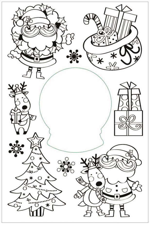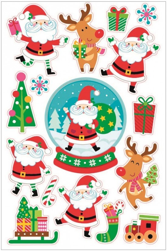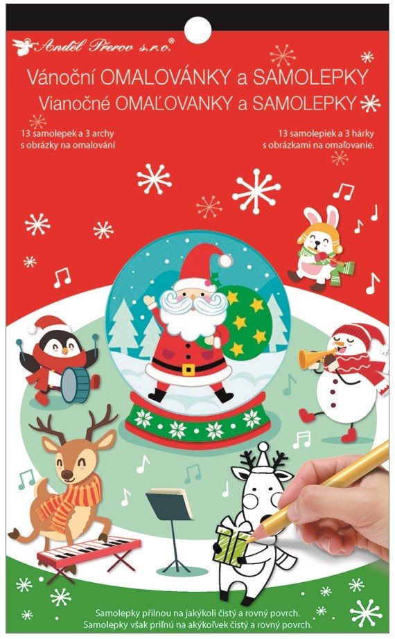 Sada 13ti samolepek a 3 archů obrázků k vymalování s vánočními motivy.