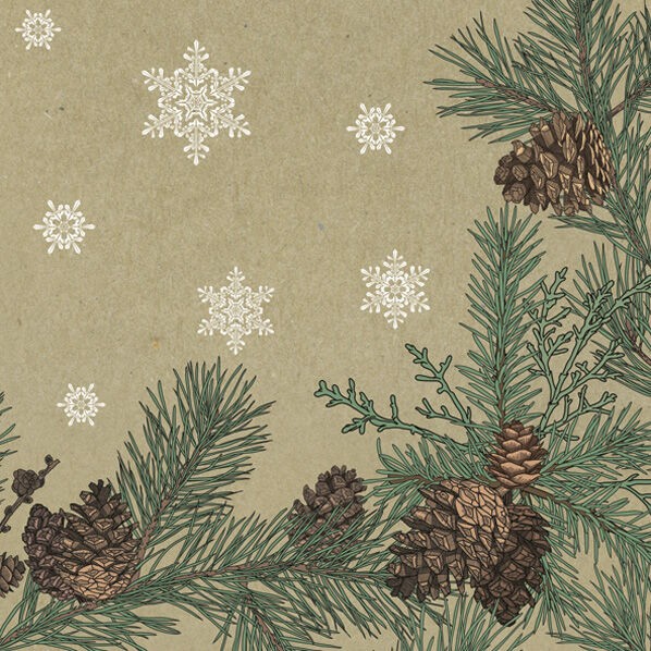 Vánoční ubrousky Daisy L - Graphic Pines and Twigs Frame on Kraft - SD_GW_019501