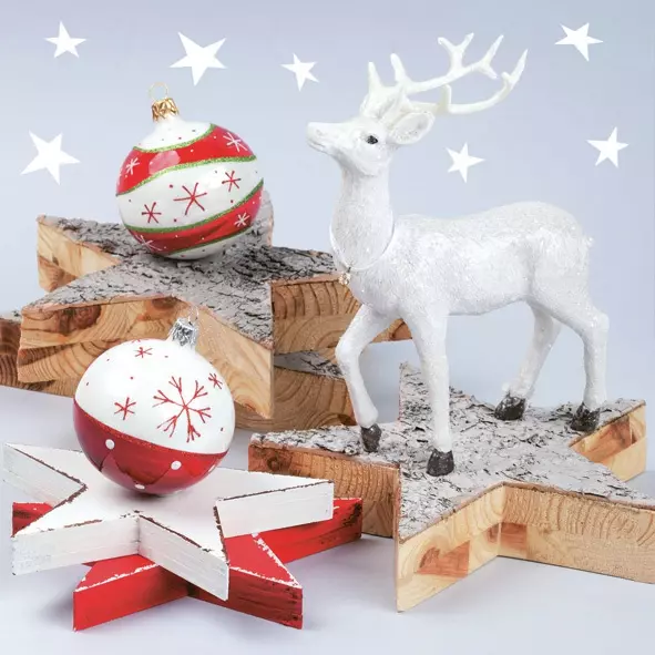 Vánoční ubrousky Daisy L - White Reindeer with Wooden Stars - SD_GW_014801