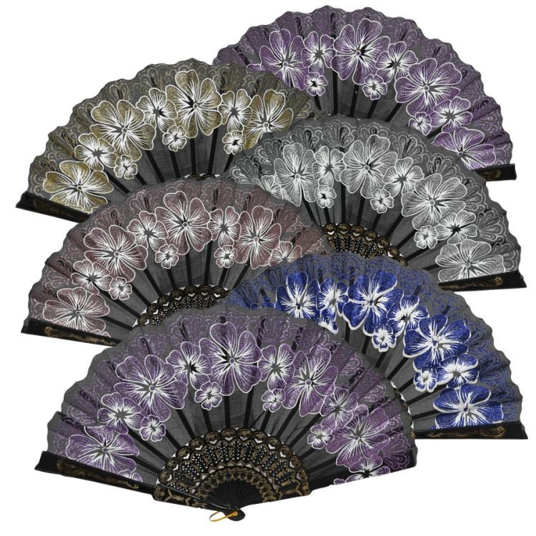 Vejíř se zlatým ornamentem - květy s glitry - černý - 408240