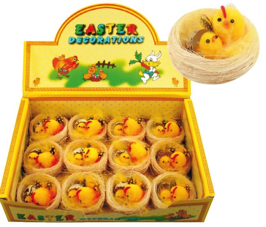Velikonoční kuřátka ve světlém hnízdě - 6 cm - 12 ks - 8614