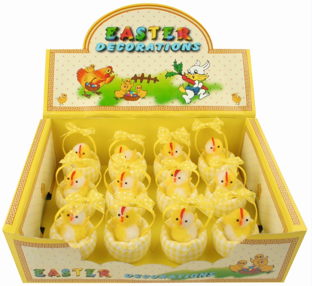 Velikonoční kuřátka ve žlutém košíku 8078