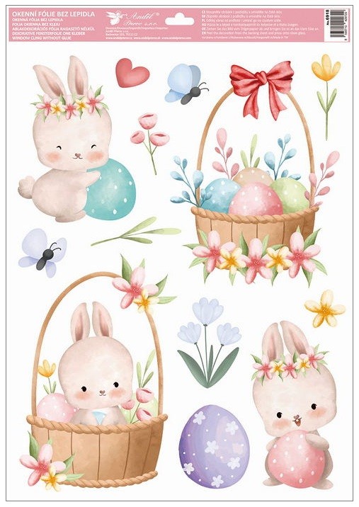 Tato dekorační okenní fólie s roztomilým velikonočním motivem zajíčků, kraslic a jarních detailů o rozměru 35 × 50 cm vnese do interiéru svěží a sváteční atmosféru. Přilne elektrostaticky – bez lepidla, nezanechává žádné stopy, snadno se aplikuje a je opakovaně použitelná.
