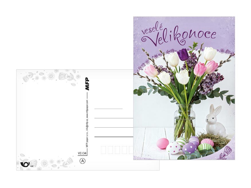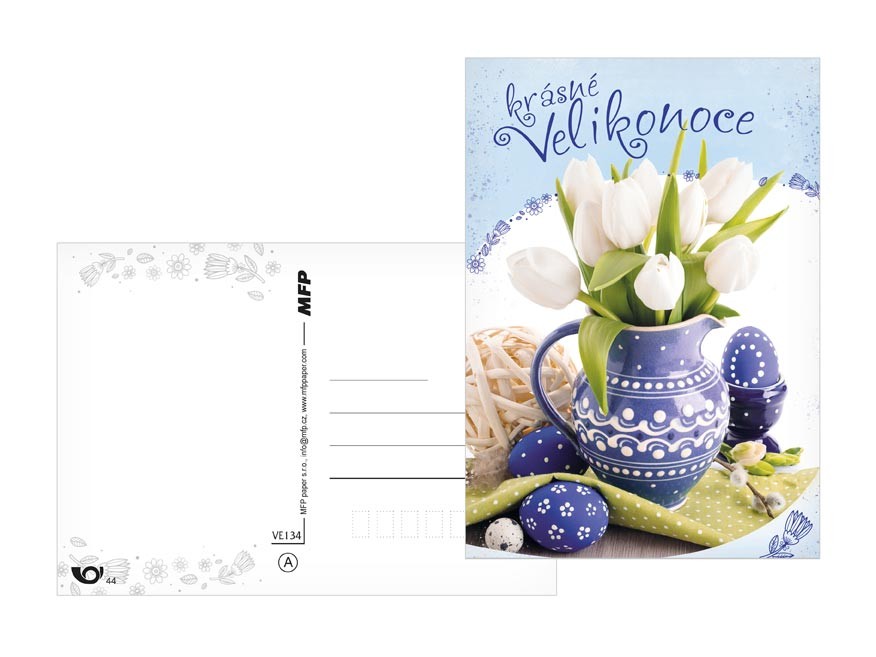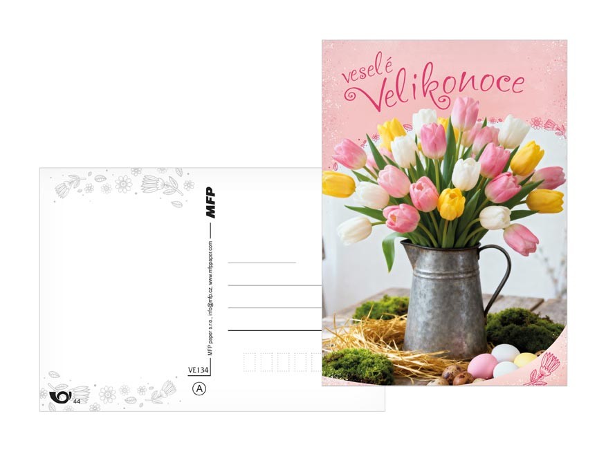 Velikonoční pohlednice je jednoduchý způsob, jak někomu udělat radost. Na zadní stranu můžete napsat vlastní přání — všechny motivy jsou bez textu, takže máte volný prostor pro osobní vzkaz.Text na přední straně: