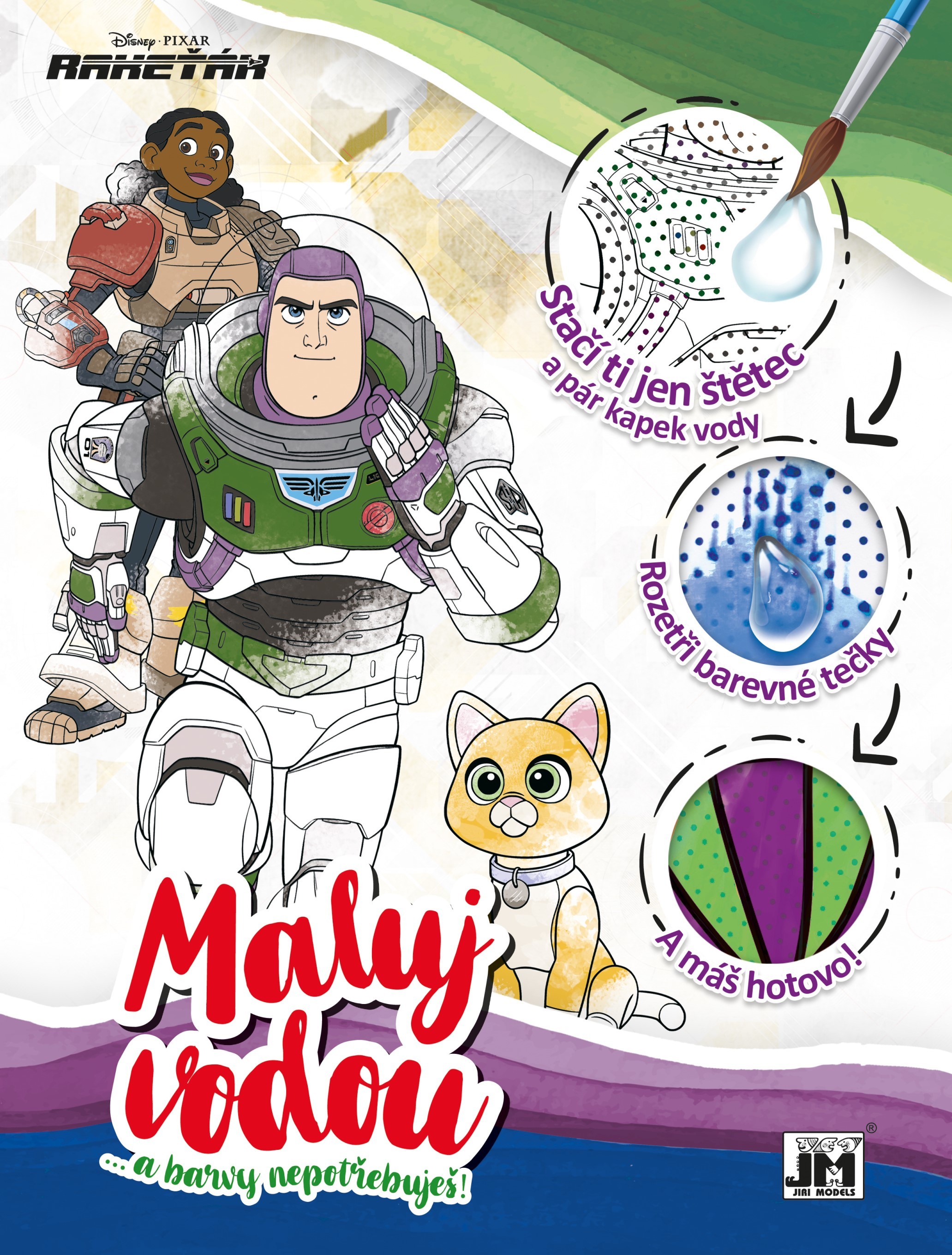 Větší A4 formát obsahuje 23 kouzelných obrázků, k jejichž vybarvení dětem stačí pouze štětec a pár kapek vody. Poté, co mokrým štětcem rozetřou barevné stopy, získají krásně barevné ilustrace.