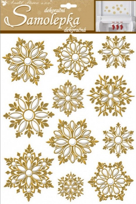 Vypouklé samolepky - zlaté vločky - 35 x 27,5 cm - 10306