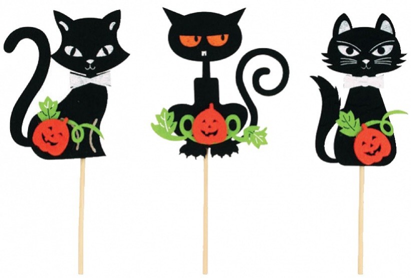 Zápich - kočky černé z filcu 8 cm + špejle - 7086