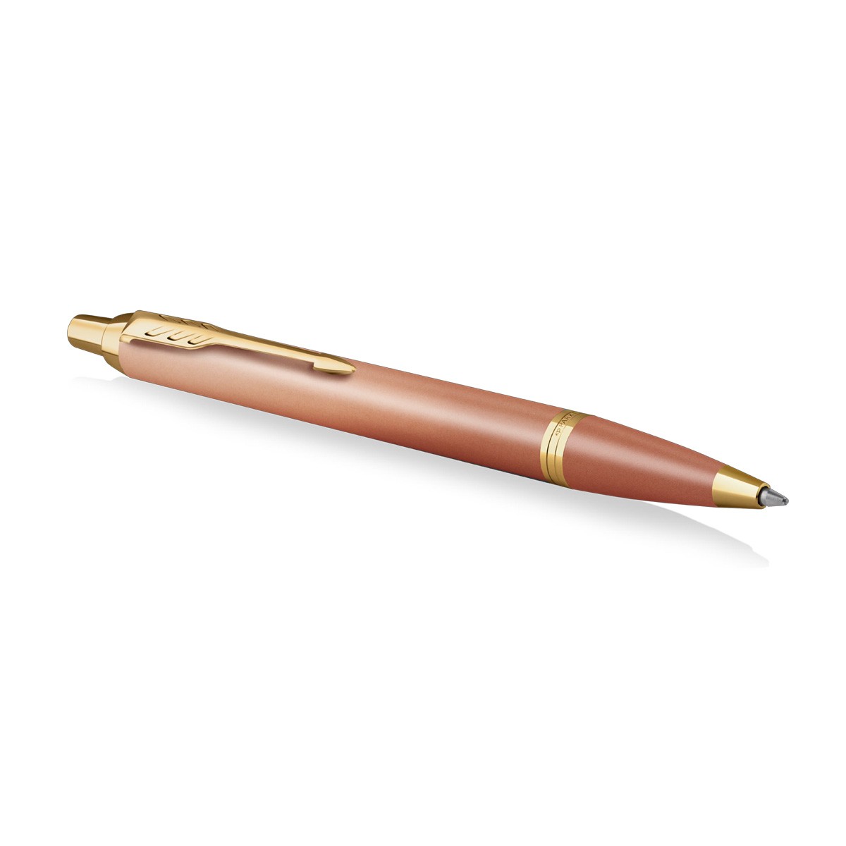 Propiska Parker Royal IM Writing Rituals Orange GT má tělo pokryté saténově metalickým barevným lakem. V kombinaci s doplňky potaženými pomocí techniky PVD zlatou barvou.