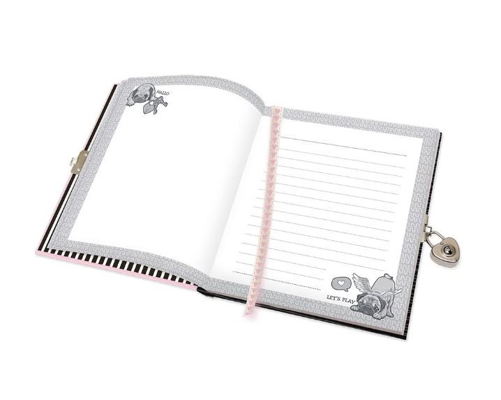 Památník se zámkem v dárkovém balení obsahuje 60 listů linkovaných, 60 listů čistých, stuha slouží jako záložka.