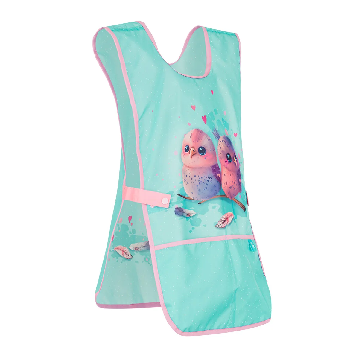 • Nastavitelné zapínání – díky chytrému řešení s bočními patentky zástěrka skvěle sedí a zajišťuje jednoduchou manipulaci pro děti.