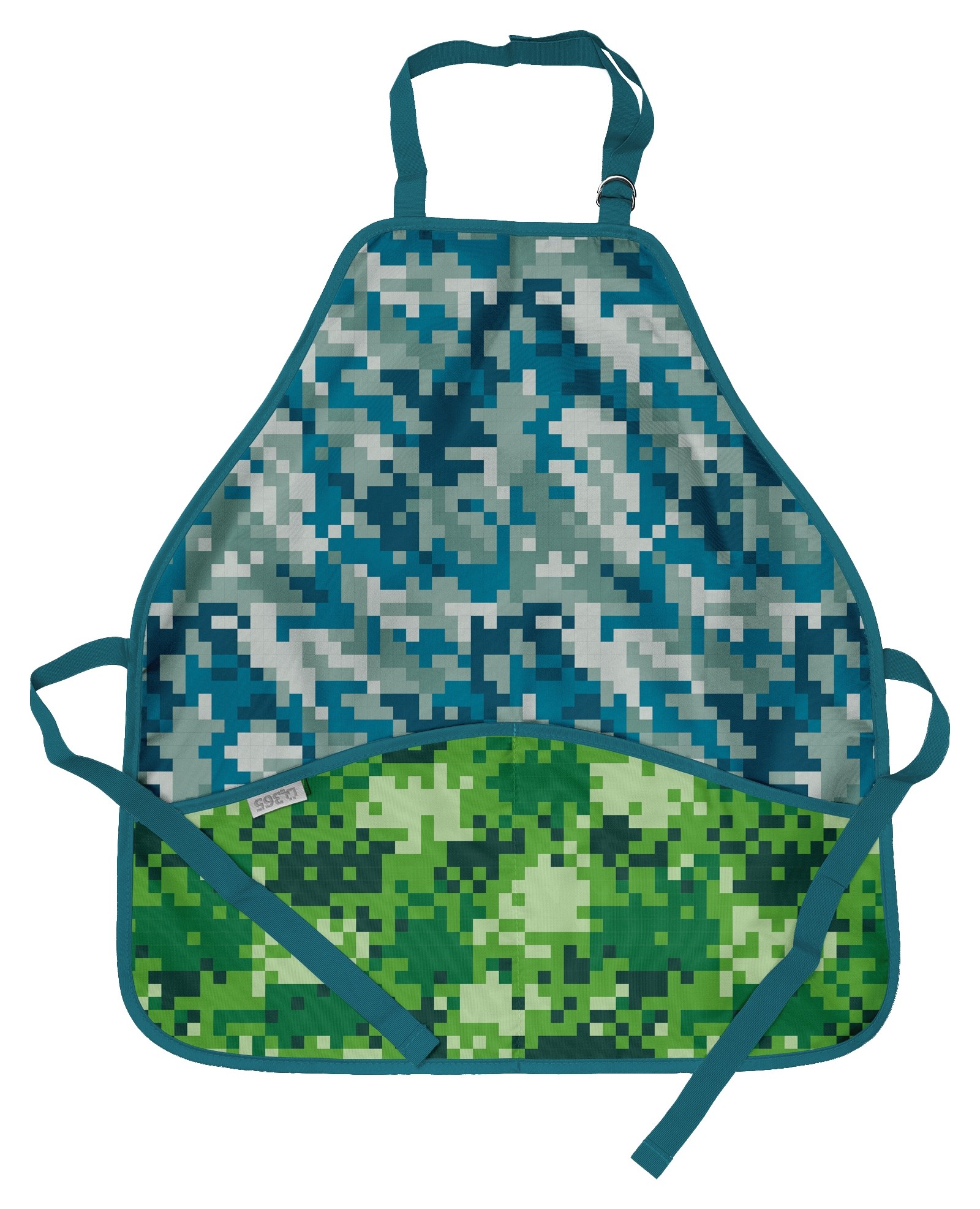 Zástěrka na výtvarnou výchovu se navléká nastavitelným popruhem přes hlavu a zaváže se kolem těla pomocí šňůrek.