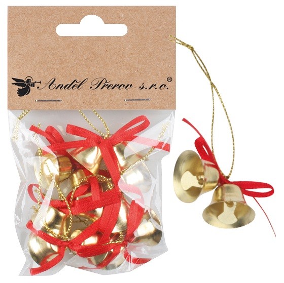 Dvojité zvonečky zlaté, 4 x 2 x 2 cm, 6 setů v sáčku